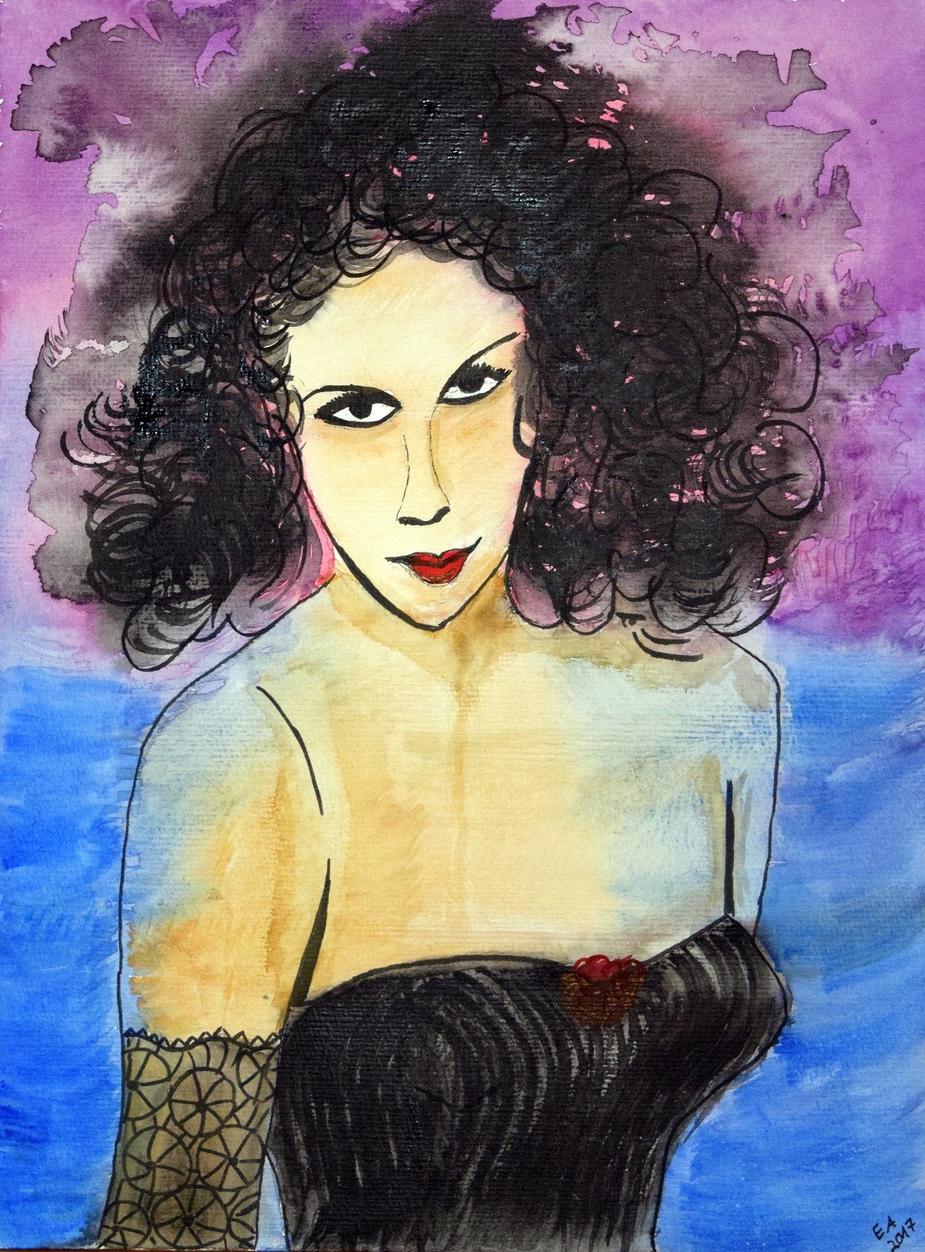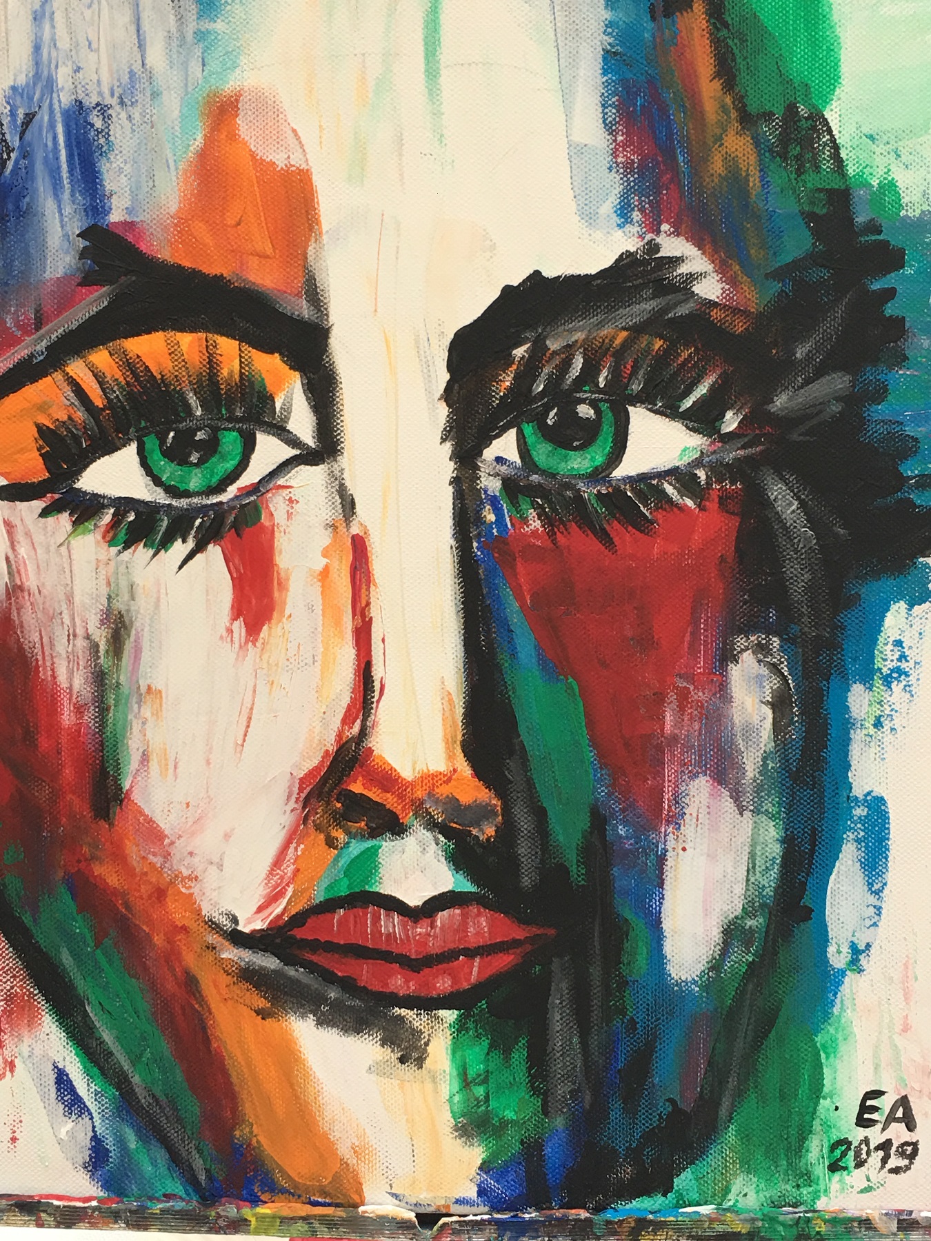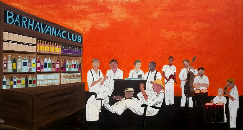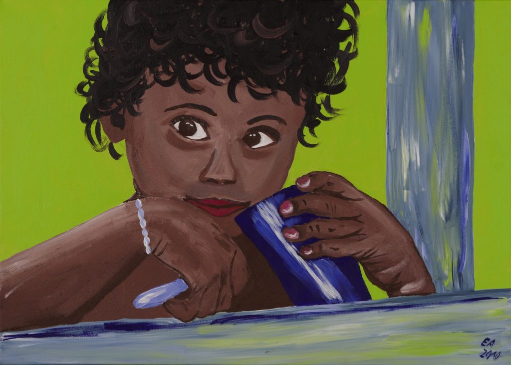 Menschen Akt Junger Mann – Acryl – 50×100 Bar Havanna Club – Acryl – 80×120 – verkauft Frau in schwarz – Aquarell/Tusche – 30×40 Frau mit Perlenkette – Ölkreide – 40×50 Gesicht – Acryl – 30×40 Kind mit Becher – Acryl – 50×70 – verkauft Mädchen mit Schmetterling – Acryl – 58×58 Tänzerin – Acryl – 80×100 – verkauft Venus im Park mit Rahmen – Acryl – 50×60